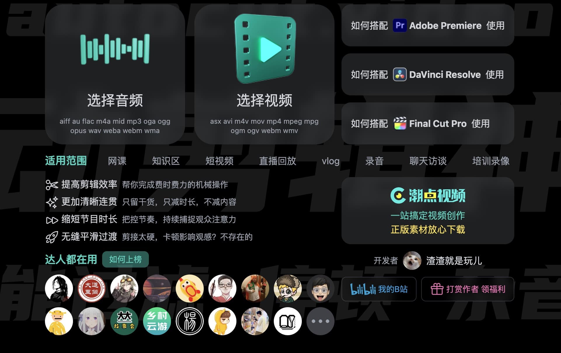 比较适合口播类视频及音频,这类会有很多无意义的停顿,如果在 au 里面一断一断删除,可是一个大工程,但是用自动剪辑神器,就很简单了。