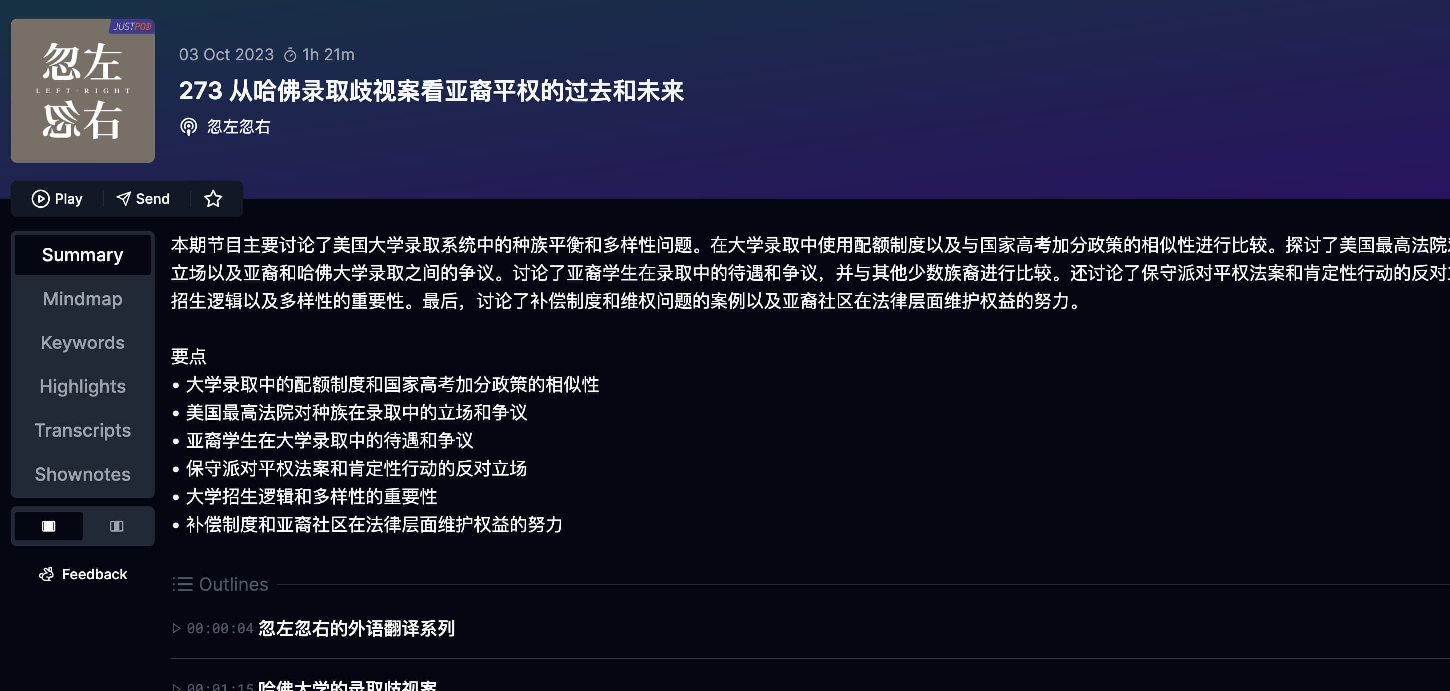 借助 AI 驱动的摘要,您可以在一分钟内掌握任何剧集的主要精髓。