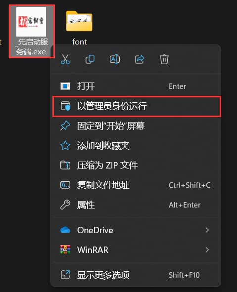 首先运行 右键以管理员身份运行先启动服务端.exe
