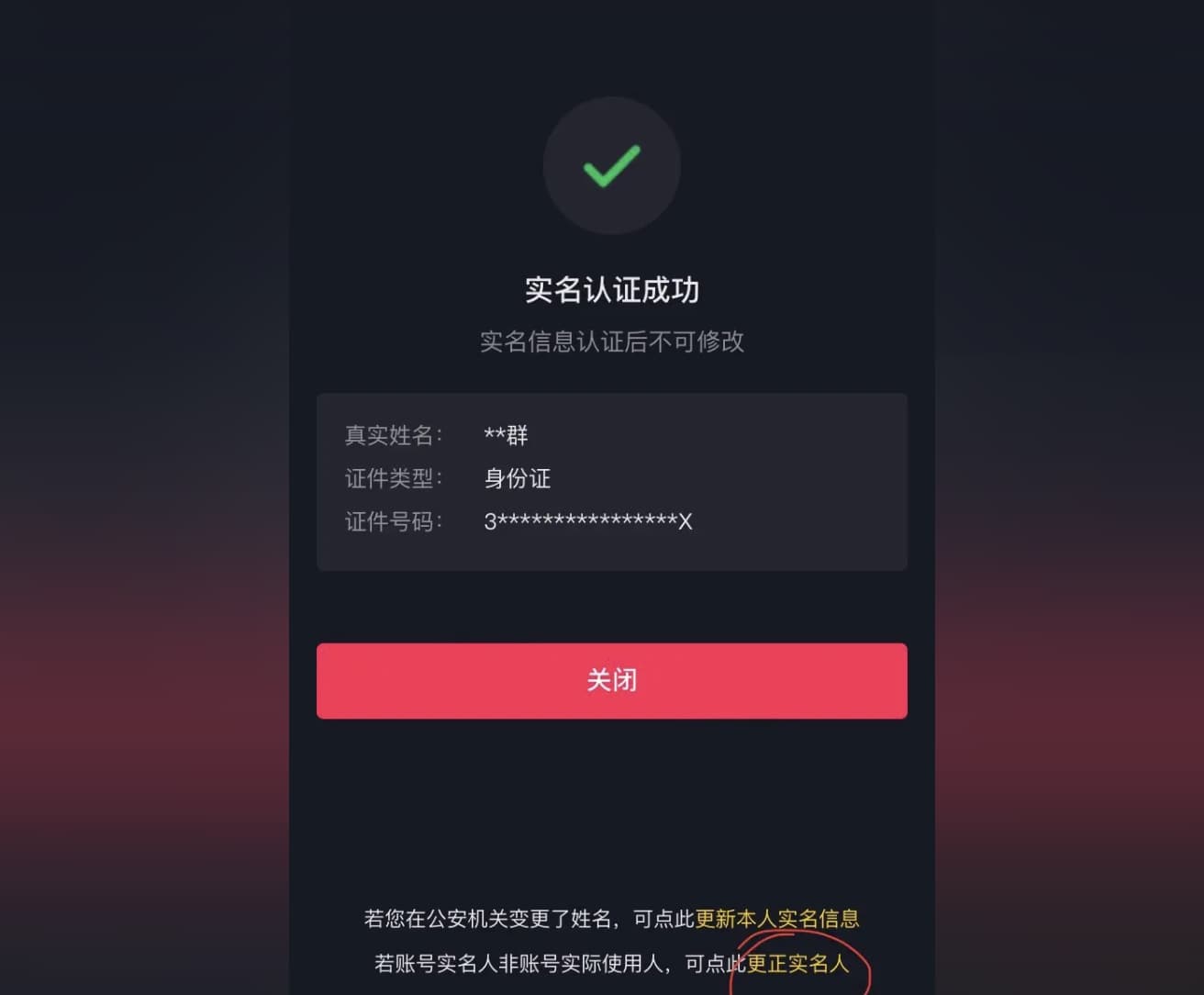 二、抖音新内侧了自助更改实名,部分用户已可以申请
