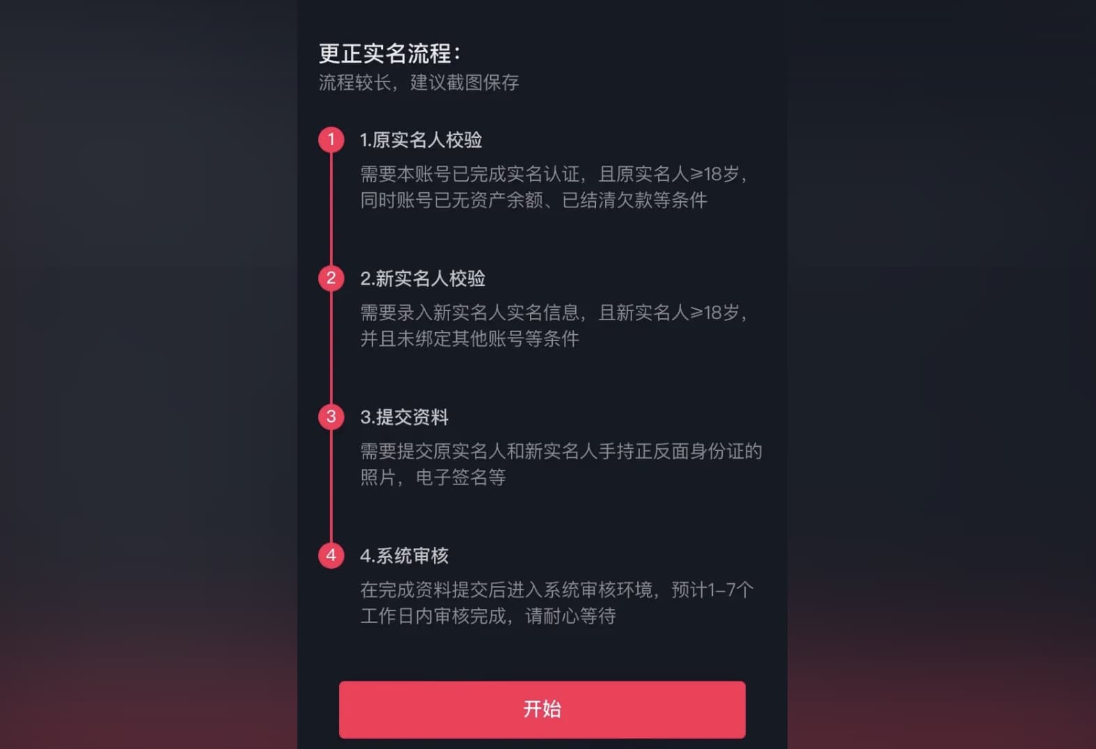 但麻烦的是原实名人和新实名人需要同时校验,审核通过后才可以更改